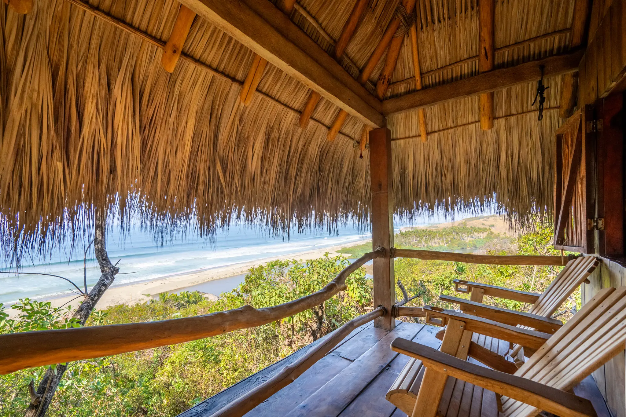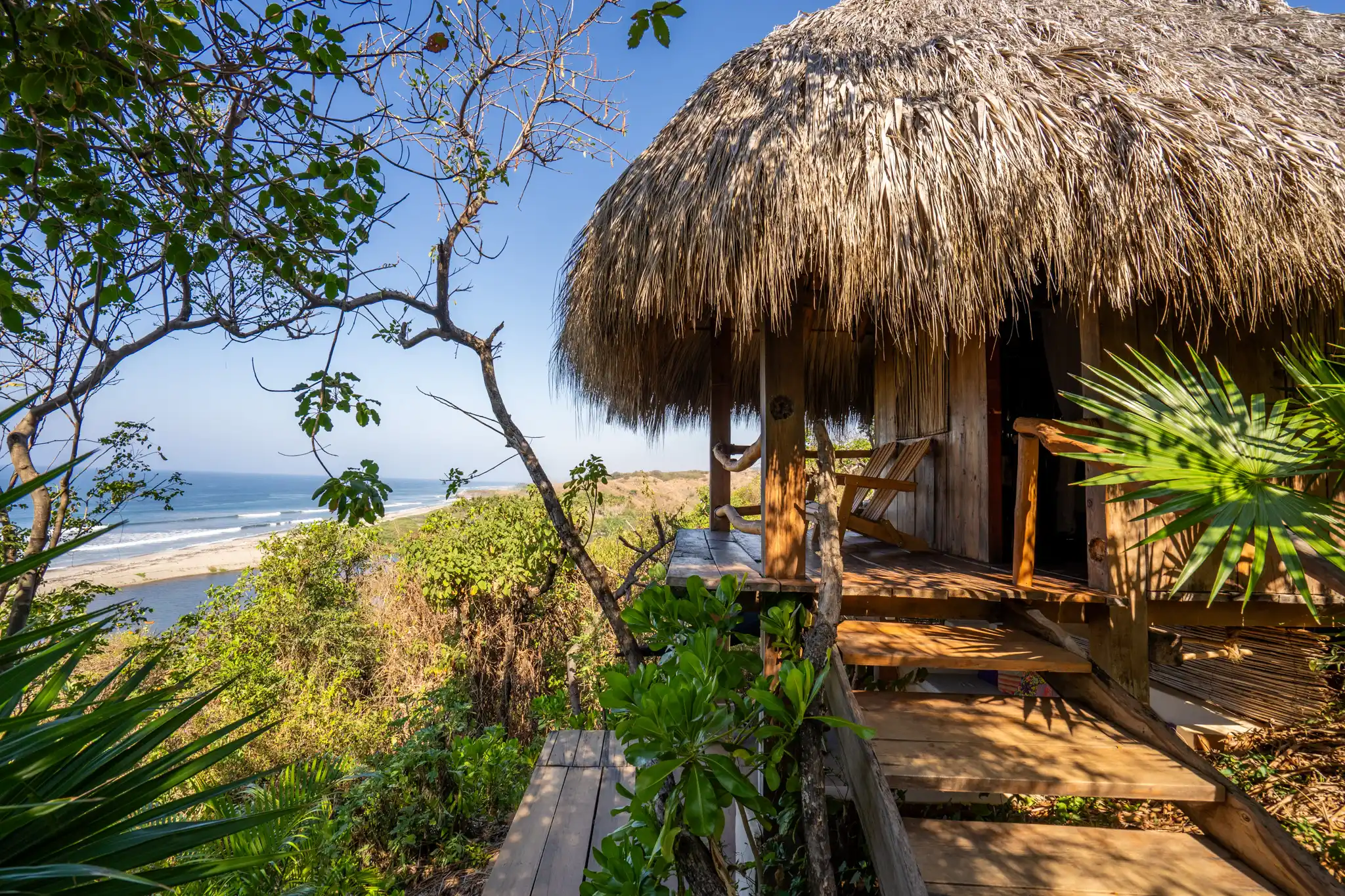 Cabaña Pecarí es un refugio elevado donde la vegetación te abraza y el mar se asoma al fondo como una promesa de libertad. Al estar ubicada en la parte más alta de la propiedad, regala una vista espectacular al océano Pacífico, visible desde su terraza superior o desde el tapanco inferior, siempre acompañada por el murmullo de la naturaleza.